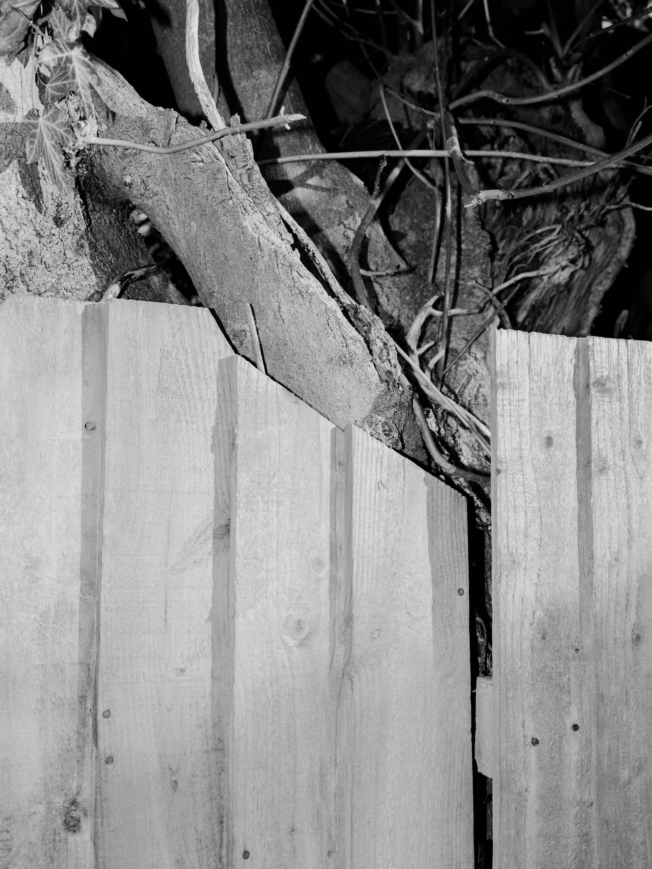 Within this series, the fence functions as a central motif through which the tension between private and public space is explored—simultaneously marking boundaries, signalling exclusion, and offering fleeting glimpses beyond. The spatial characteristics of the ginnel also encourage an iterative process, highlighting how persistent engagement can cultivate a heightened sensitivity to detail. Vertical orientation is used throughout to communicate the claustrophobic quality of the ginnel and a sense of the constructed fragility of residential boundaries, drawing attention to the role of such barriers in negotiating spatial and interpersonal relationships.